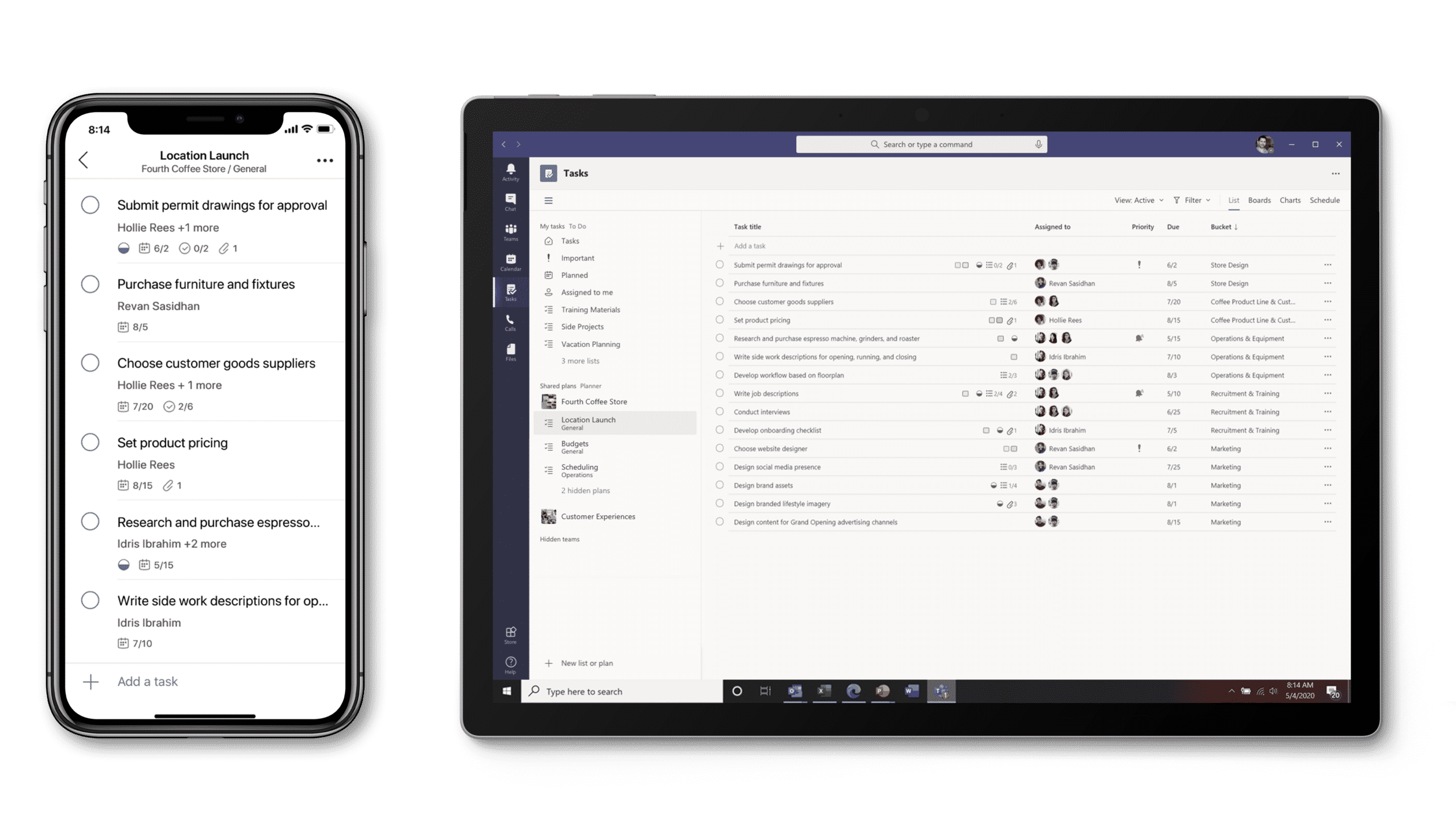 Tasks app–The Tasks app in Teams, rolling out this month, provides a new unified view of tasks from across Microsoft To Do, Planner, and Outlook. Smart lists like “Assigned to me” bring tasks together across different shared plans, whether you’re on desktop, web, or mobile. Add Tasks as a tab in a channel and get your familiar Planner tab experience with the new list view.