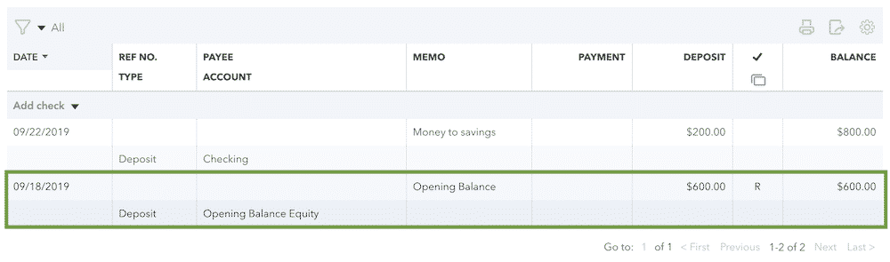 If you see an opening balance entry, don’t go further. Take note of the date and amount. Use your bank statements to make sure the opening balance is correct.